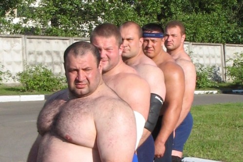 Here are Igor Pedan and Vladimir Kalinichenko wearing a bearmythology-approved tight-fitting spandex and shorts, respectively.