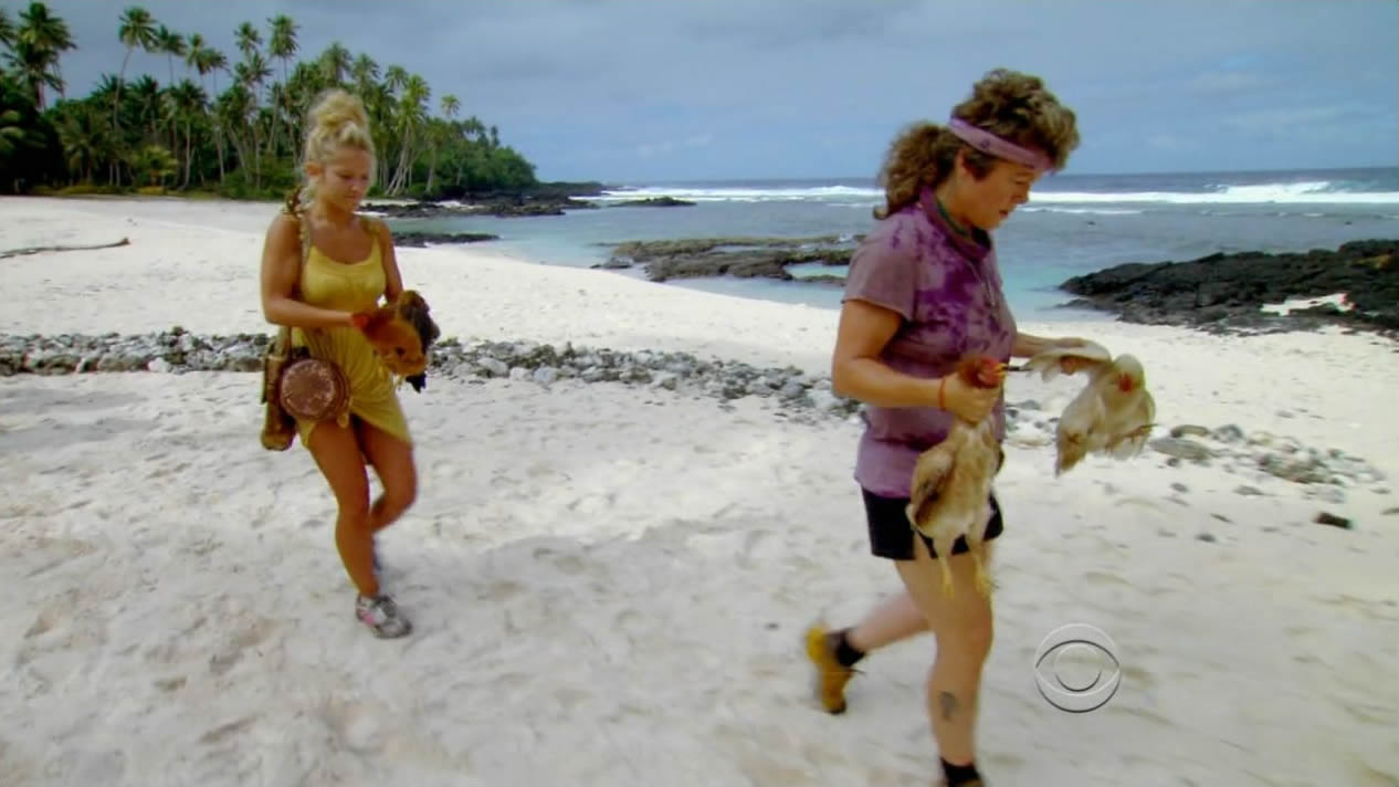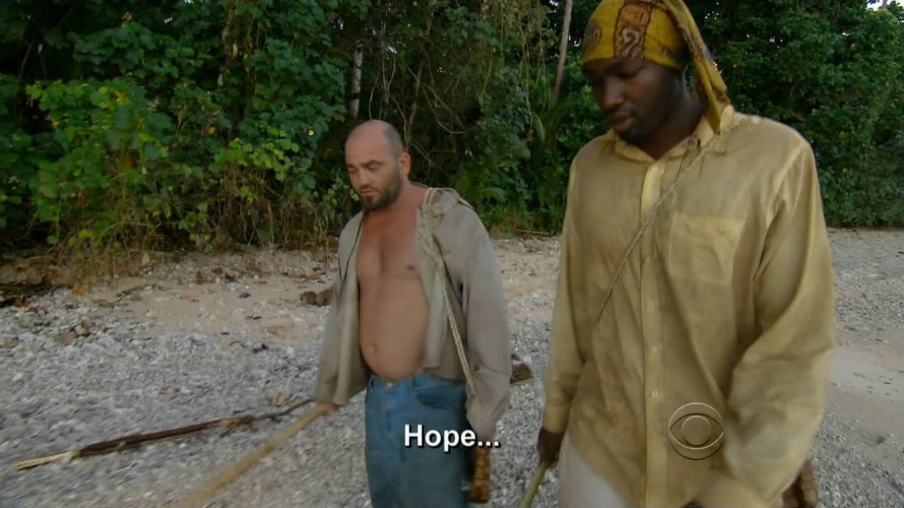 So Russell’s on to his next strategy: dump his allegiance with Jaison and forge a new one with one of his “dumb ass girls,” Natalie. Russell is definitely crude and insensitive with his comments, but are people forgetting that this game is called “Survivor”? Hell, if you placed Satan and Jesus on the island, guess who’ll win? Well, Jesus will probably win considering he has unlimited immunity since he cannot die at all. Come to think of it, who’s the sneakiest of the two then? -_^